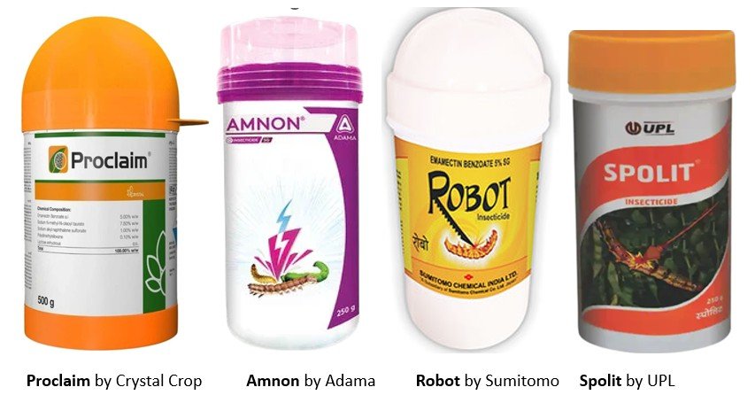 1.Emamectin benzoate 5% SG @70 to 90g /acre