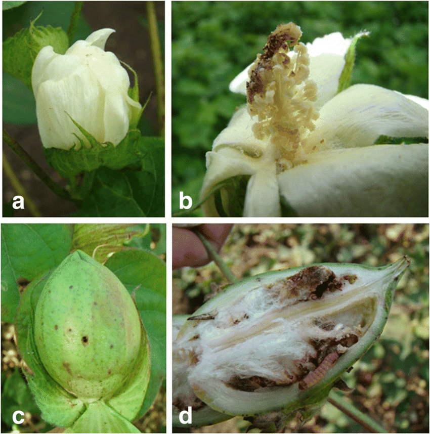 4. Black larval frass inside bolls